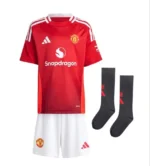 When United won 4-1 in the opening game of the 2024/25 season, Hojlen’s brace and Menu’s midfield dominance were wearing this 2024/2025 home kit for the kids! The classic red and white striped design perfectly replicates the first-team jersey, allowing children to experience the glory of the Theatre of Dreams from the first time they step on the pitch.