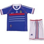 Let your young players become Zinedine Zidane, Thierry Henry and Didier Deschamps and relive the legendary moments of victory at the 1998 World Cup in France! This classic replica of the home children’s jersey set perfectly recreates the glory of the Gallic Army in the French summer, with a blue, white and red design and the iconic rooster emblem, allowing children to experience the glorious history of World Cup winners.